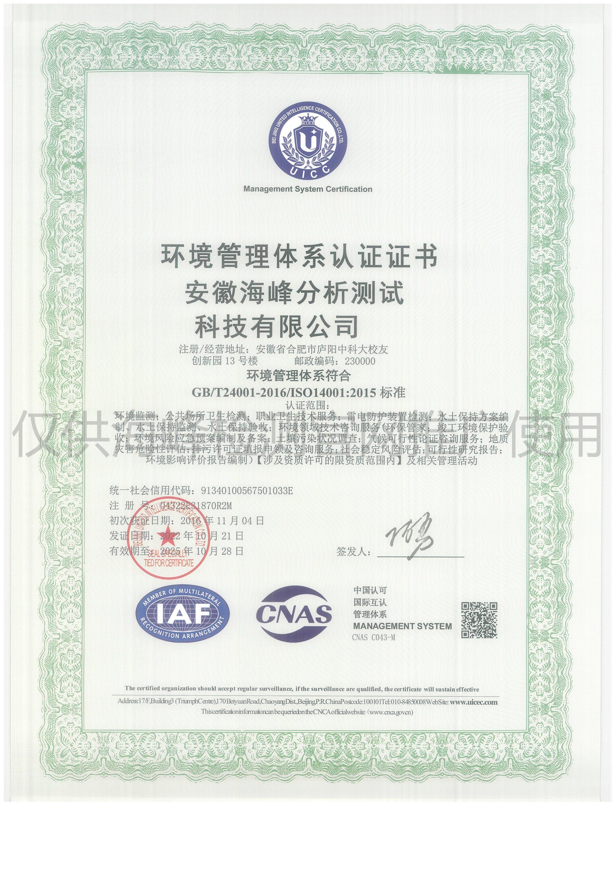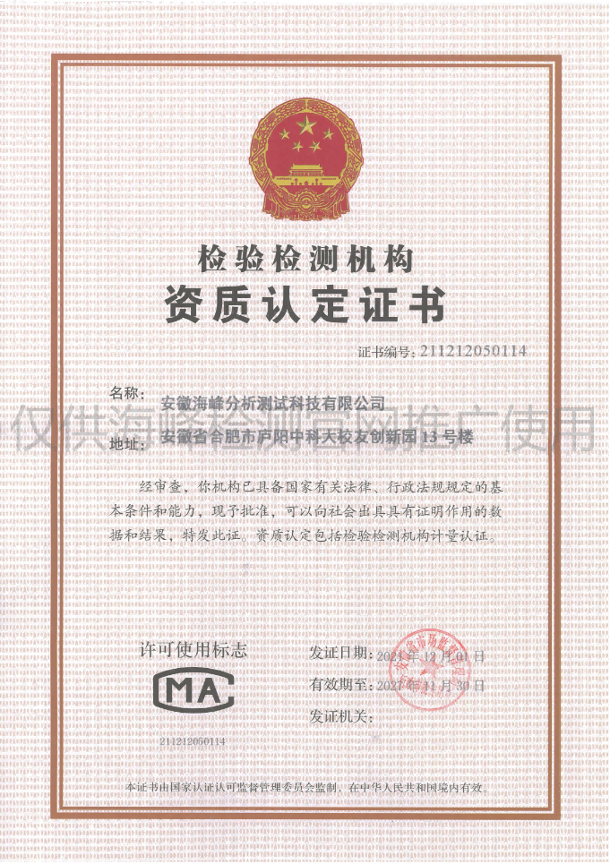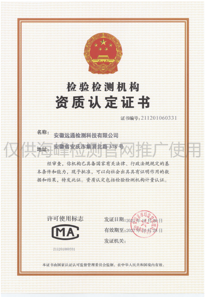 安徽海峰分析測試科技有限公司(以下簡稱海峰檢測)成立于2010 年,隸屬于安徽方中科技集團有限公司,公司下設安徽遠通檢測科技有限公司(安慶)、安徽安海新環境科技有限公司(亳州)。